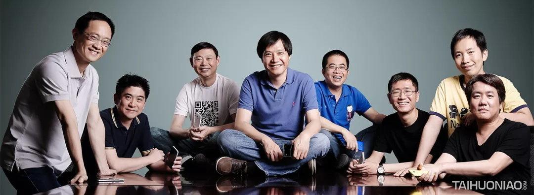 小米创始人团队(由左至右):林斌、黄江吉、周光平、雷军、黎万强、刘德、洪峰、王川