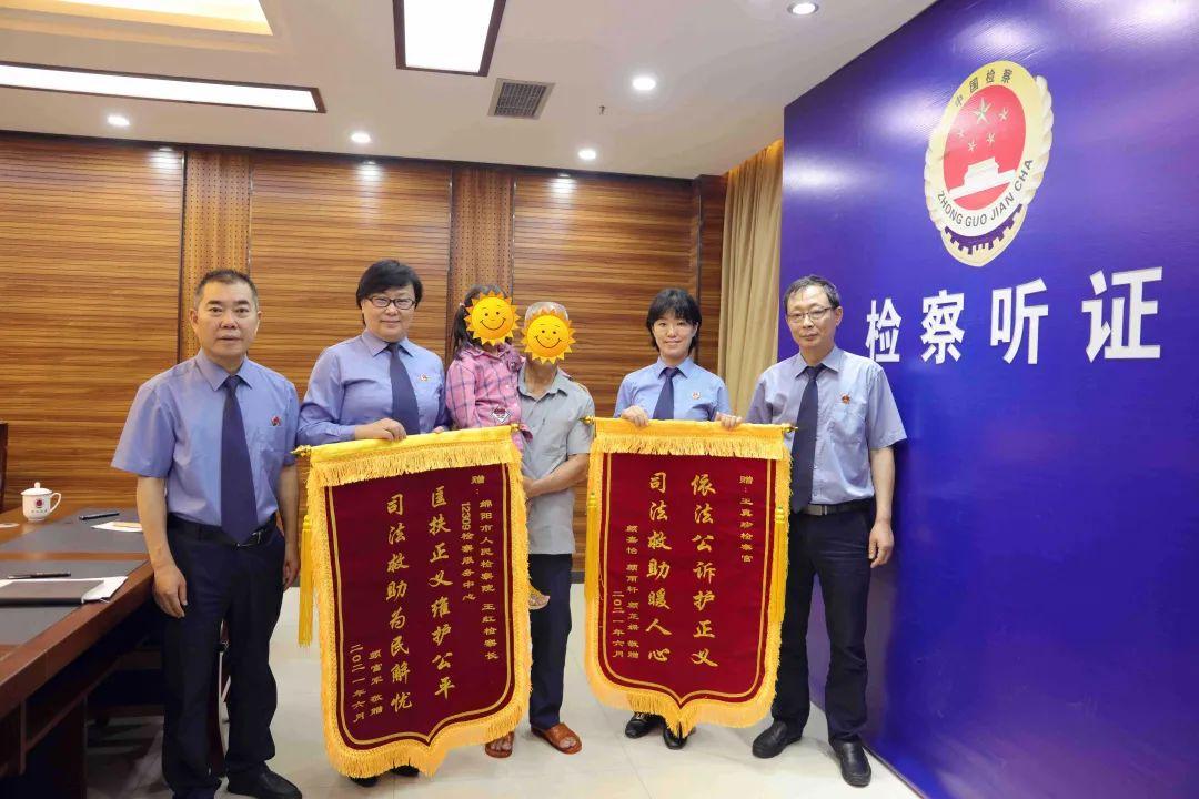 9名听证员在充分了解案情的基础上,各自发表了意见,进行了充分的评议,并形成了听证评议意见,一致同意检察机关对申请人进行司法救助的意见。绵阳市检察院党组成员、副检察长李正勇当场宣布了绵阳市检察院国家司法救助决定:认为颜某某等三名未成年人的母亲宋某某被王某残忍杀害,而被告人王某无力赔偿,家中突发此重大变故,颜某某等三名未成年人的父亲不仅要抚养三名未成年子女还要赡养父母以及岳母三位老人,家庭特别困难,申请人提出国家司法救助申请,符合司法救助条件。决定对颜某某等三名未成年人予以发放国家司法救助金74300元。颜某某等三名未成年人的委托代理人对绵阳市检察院的司法救助决定表示赞同,并激动地说道:“感谢党和政府,感谢绵阳市检察院对我们家庭的关心、关爱,我们一定会尽快走出阴影,用好司法救助金,全力把三个孩子带好,不辜负党和政府、检察机关的关怀”。听证会结束后,颜某某等三名未成年人的委托代理人向绵阳市检察院检察长王红、司法救助案件承办人送上写着“匡扶正义维护公平,司法救助为民解忧”的锦旗。