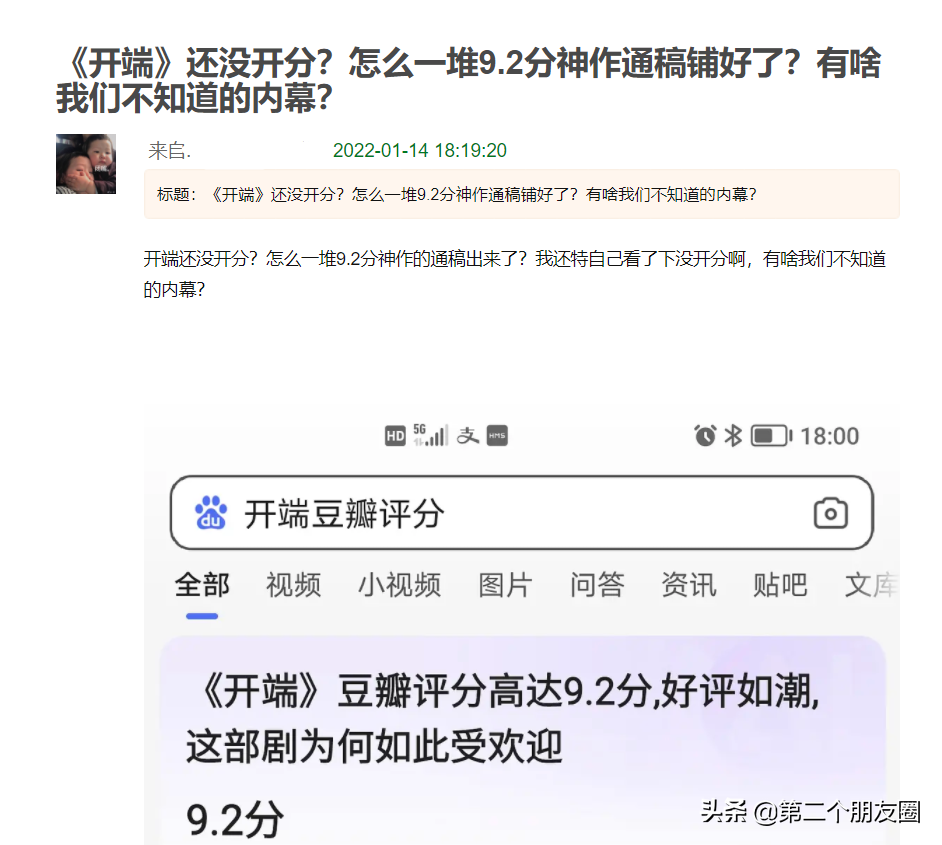 一些人对《开端》有逆反心理的其中一个原因,还是因为,之前《开端》还没有开分的时候,就有许多文章,被定义为9.2分的成绩,要知道,未开分,就这个营销,绝对会激起许多人的逆反心理。觉得营销太过了,但是开分后是8.2,从开分后,这个营销程度来看,确实,觉得分低了。