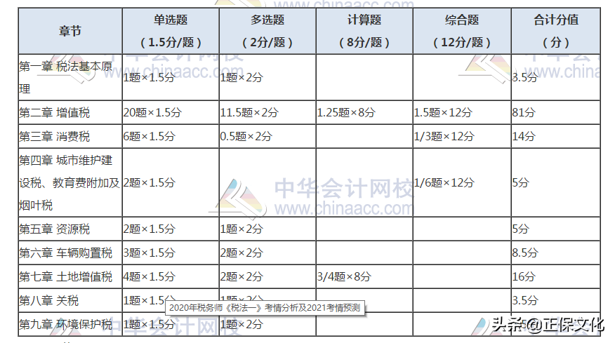 第一、增值税,消费税,土地增值税依然是重点章节,尤其是增值税,占到了整个试卷分值的一半以上,可以说得增值税者得天下。消费税、土地增值税依然是次重点章节,分值不容小觑,令我们感到意外的是资源税,这个历年考试都是次重点的章节,在2020年考题中变得格外不起眼,主要原因在于2020年《税法一》教材根据新的资源税法做了重大调整,删减了大量内容,这也导致资源税这一章出题依据不足,但是资源税的重要性依然不可忽略,随着资源税具体政策的出台(比如自产和外购的矿产品混合销售计税问题的公告等),预计在2021年教材中,资源税法的内容可能会增加,同样在2021年考试中,资源税的分值可能会有所回升