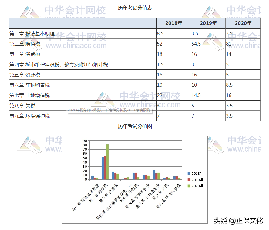 通过以上总结分析,我们看出增值税,消费税,土地增值税依然是重点章节不能忽视,尽管资源税在今年考试中被“爆冷门”,但是预计2021年其分值会有所回升,因此资源税仍然是大家要重点学习的一章。同时,我们也发现一个有趣的现象,尽管资源税的分值减少了,但是这些分值却被分摊进了增值税这一章中,换言之,增值税、消费税、土地增值税、资源税这四章总的分值未发生大的变动(分值仅是在这四章的内容做了结构性调整),依然占到整卷分值的70%-80%,而其他章节分值依然保持20%-30%的比重。