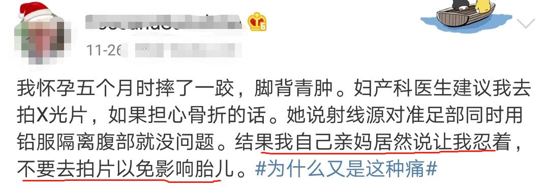 而在我们国家,孕妇和产妇都被认为是“特殊群体”,平日生活里都有着无数“祖上”传下的禁忌,更别说拍X光CT被辐射了。其实也可以理解。我们本身对X射线就有恐惧,平时自己吃点射线都不愿意,更别说怀孕之后,让肚子里的小胎儿受到X线照射了。