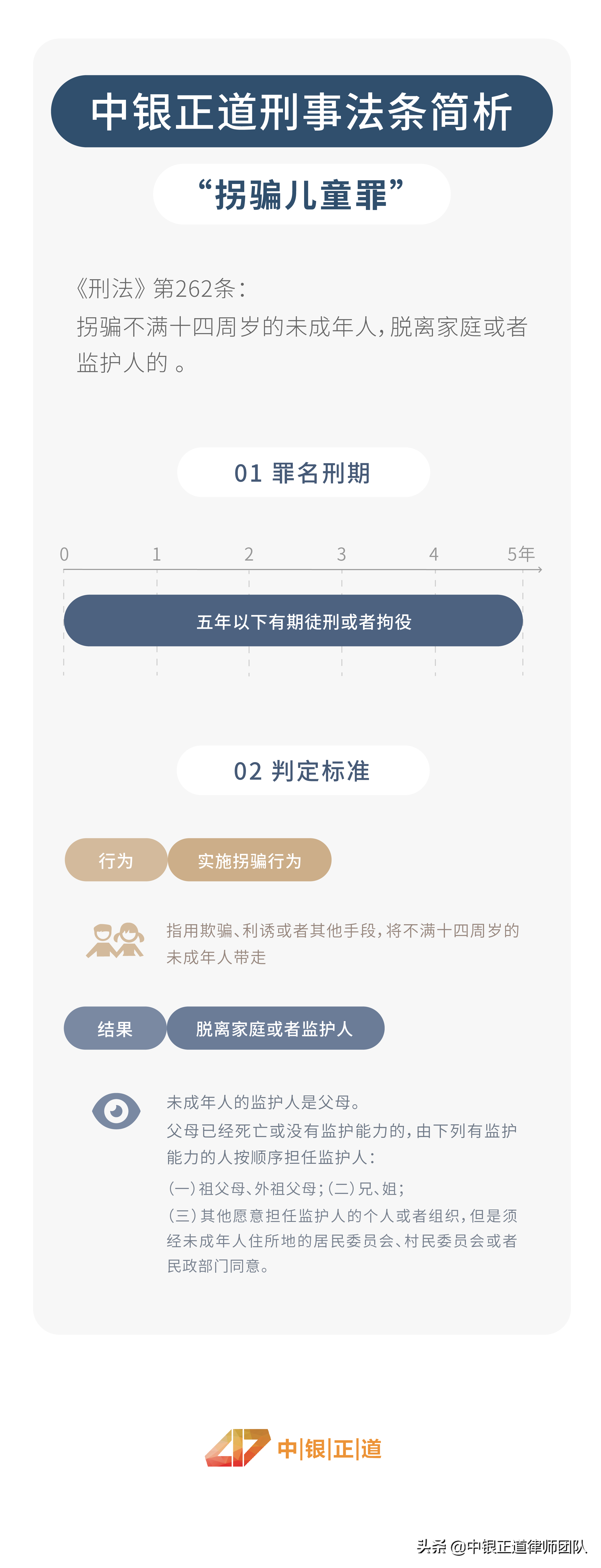 《刑法》第二百六十二条 【拐骗儿童罪】拐骗不满十四周岁的未成年人,脱离家庭或者监护人的。