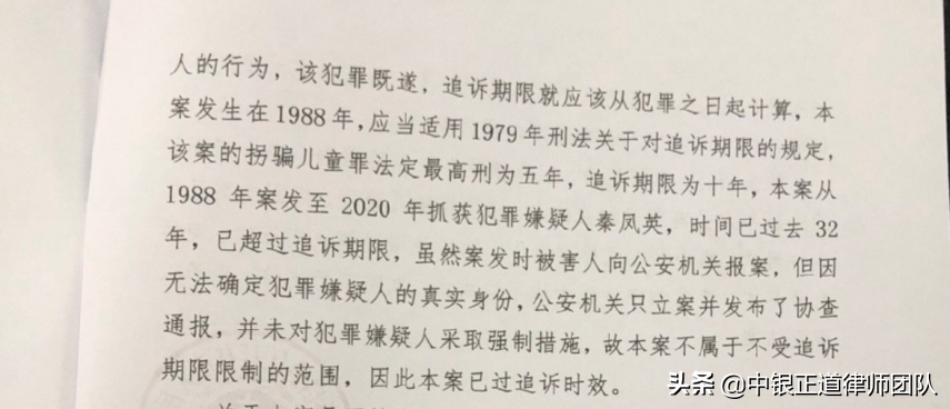 而检察机关则认为,虽然秦某涉嫌拐骗儿童罪,但因此案已过追诉时效,不批准逮捕。曹平家属对结果表示不认同,仍在坚持申诉。