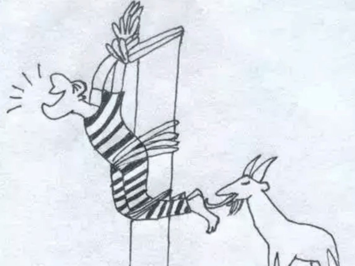 在行刑的时候,行刑者牵着山羊走出来不停舔舐受刑者的脚底。