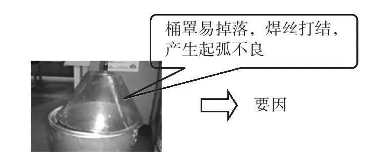 现场进行对比实验:送丝管曲处多,送丝不畅,产生起弧不良。