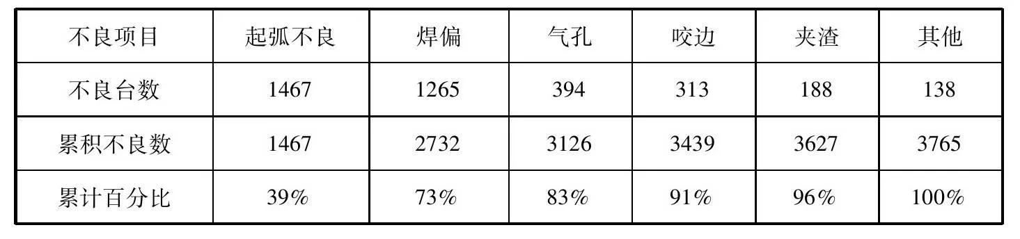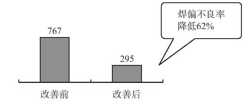 改善前后圆周焊接工序不良项目对比:改善后起弧不良、焊偏由原来的第1位、第2位降到第3位、第5位,如图所示。