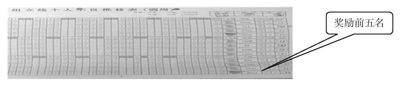 (3)个人成绩每天公布:成绩优秀者奖励,促使未达标者向优秀者靠拢,如表所示。