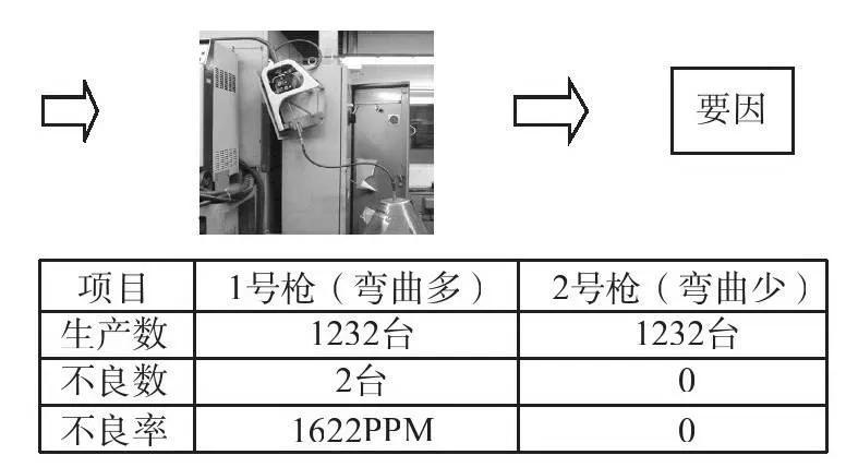 现场检查了焊丝简罩稳定状况:生产2465PCS,落地1次,产生1台不良,不良率:406PPM。