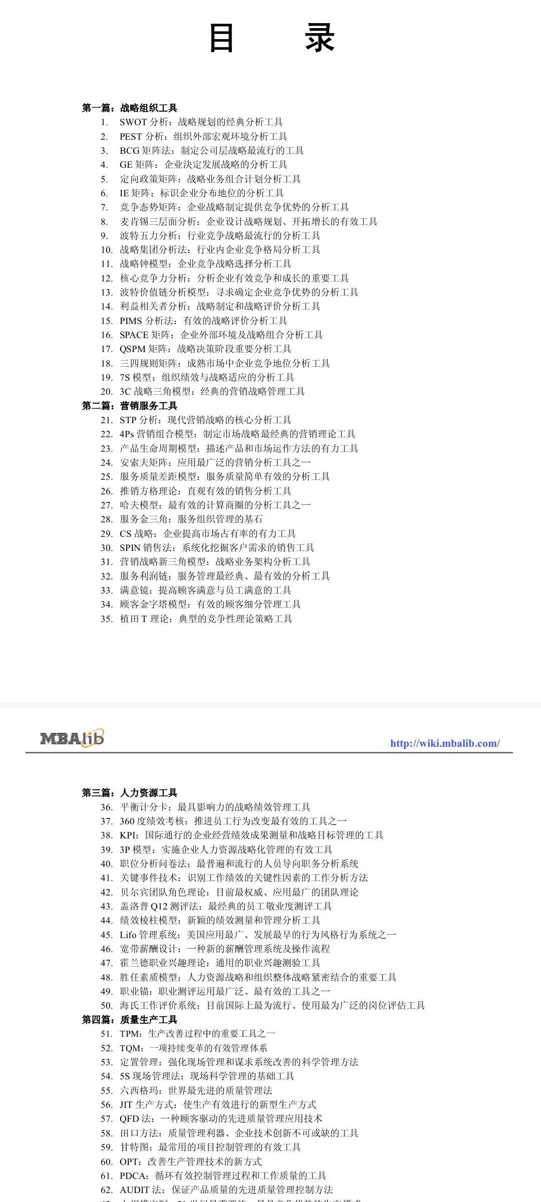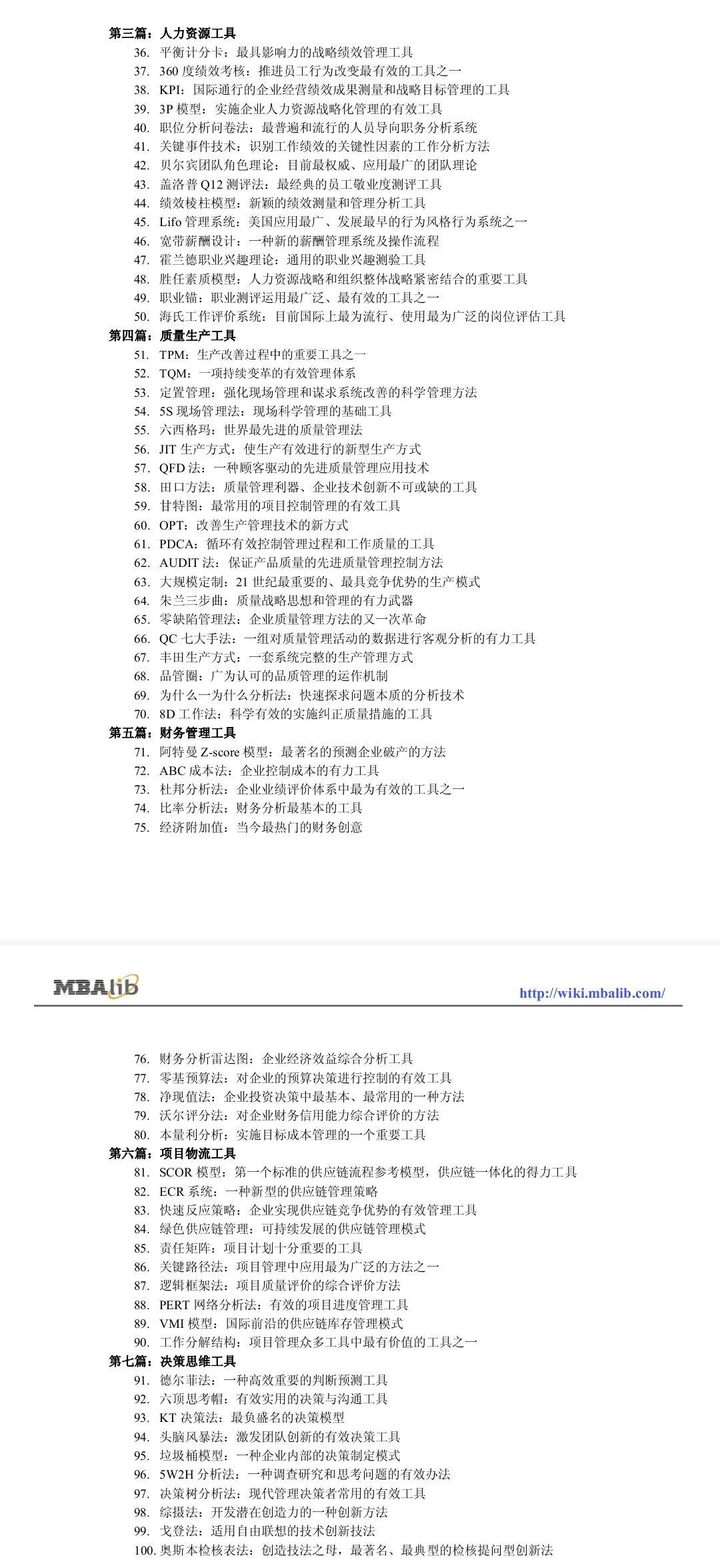 这是一份非常经典的100个管理工具模型,广大管理者案头指导用书,由MBA智库整理汇编。