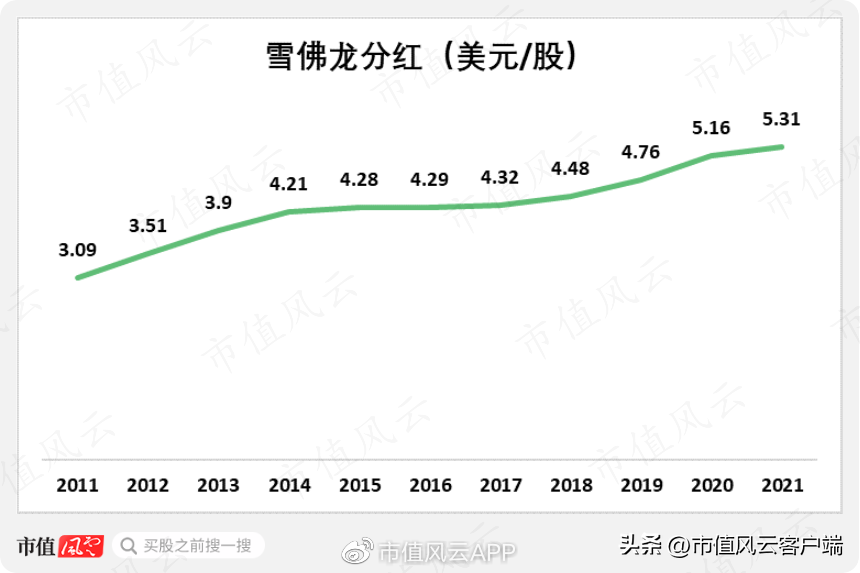 雪佛龙有一项少有人匹敌的记录:过去连续32年增加股息。注意,是增加,不是保持。从1990年算起,雪佛龙的每股股息从1.5美元逐年递增,直到2021年达到每股5.3美元。
