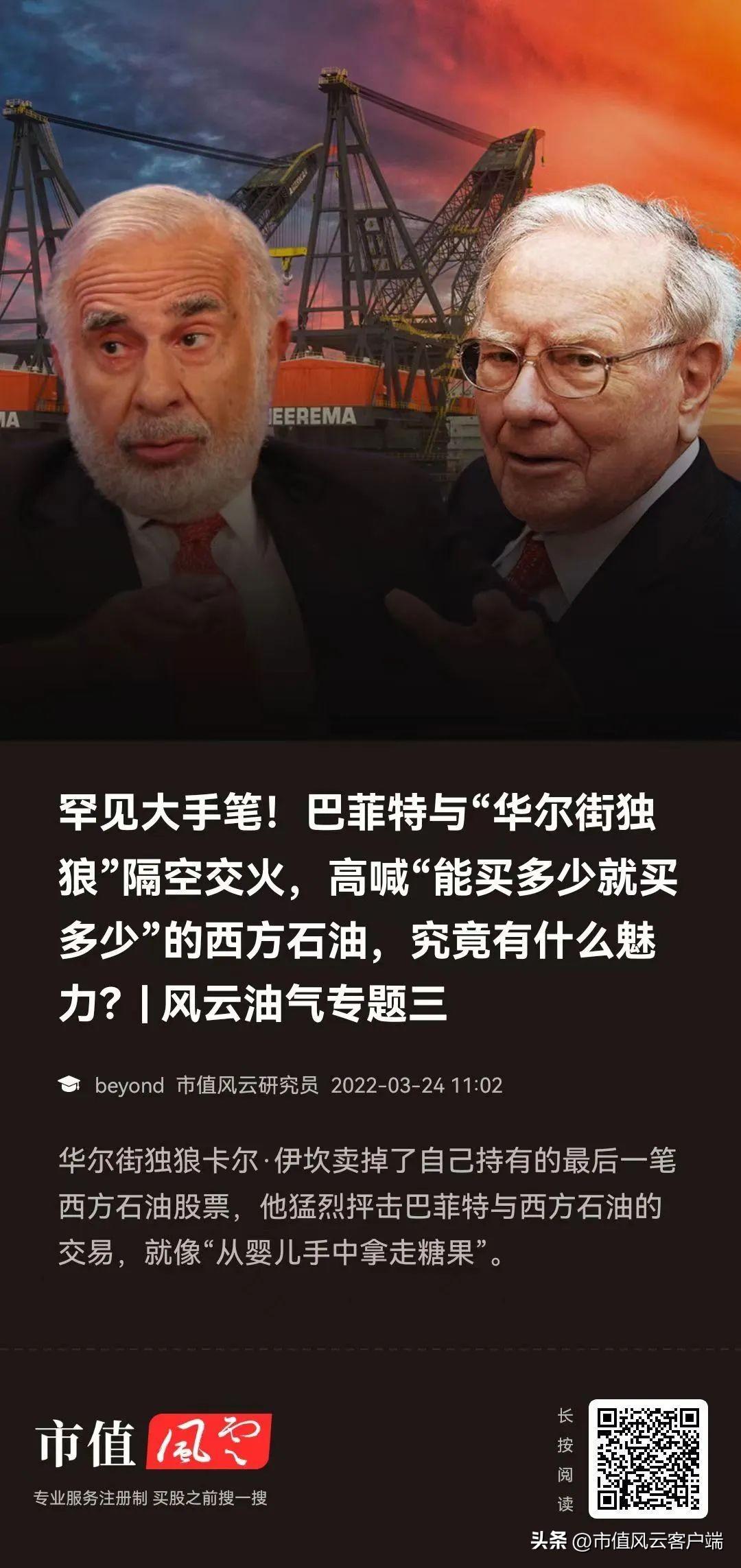 西方石油并非今天的主角,关于它的故事风云君已有论述。感兴趣的胖友们可以下载市值风云APP,查看市值风云写的关于西方石油的独立研报。