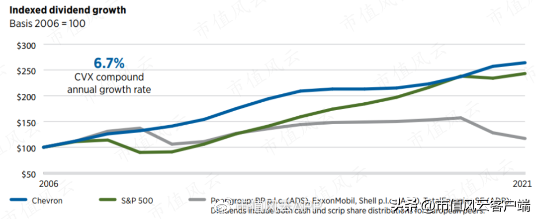 这就有助于雪佛龙沉淀大量自由现金流来回馈股东。