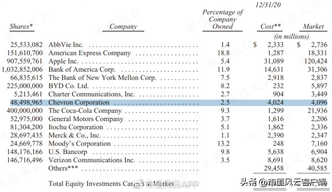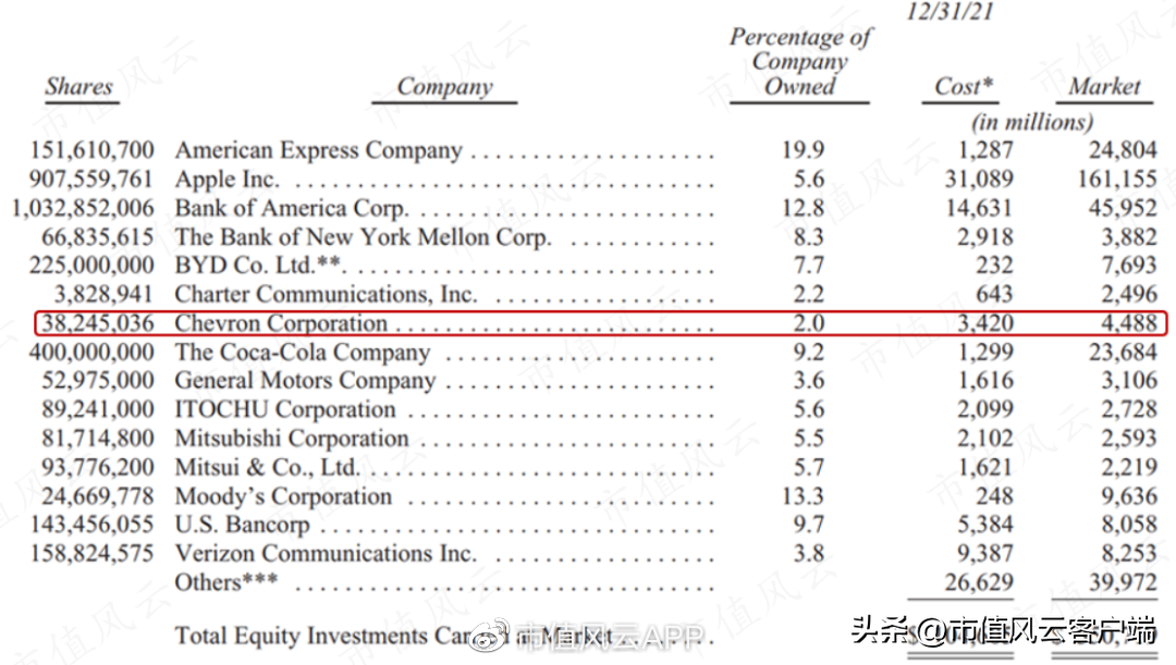 今天要说的,是巴菲特2021年十大重仓股之一——雪佛龙:除了西方石油,巴菲特在今年一季度还增持了超过1.2亿股雪佛龙股票。