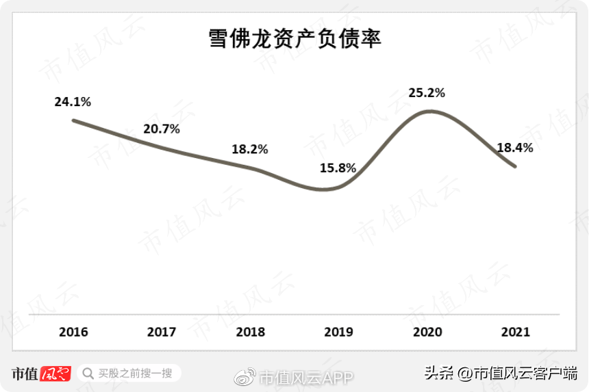 2016年以来,雪佛龙的资产负债率总体保持下降态势,2021年其资产负债率为18.4%,较2016年下降了近6个百分点。