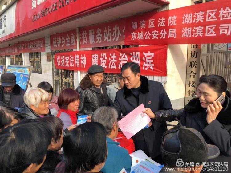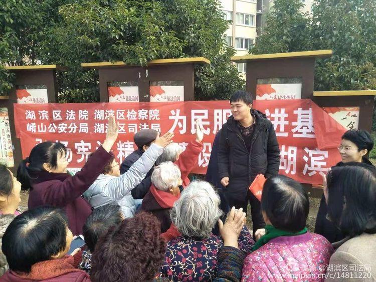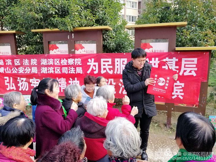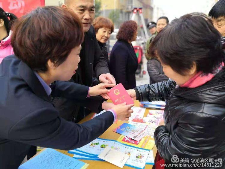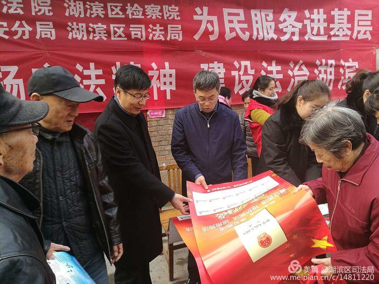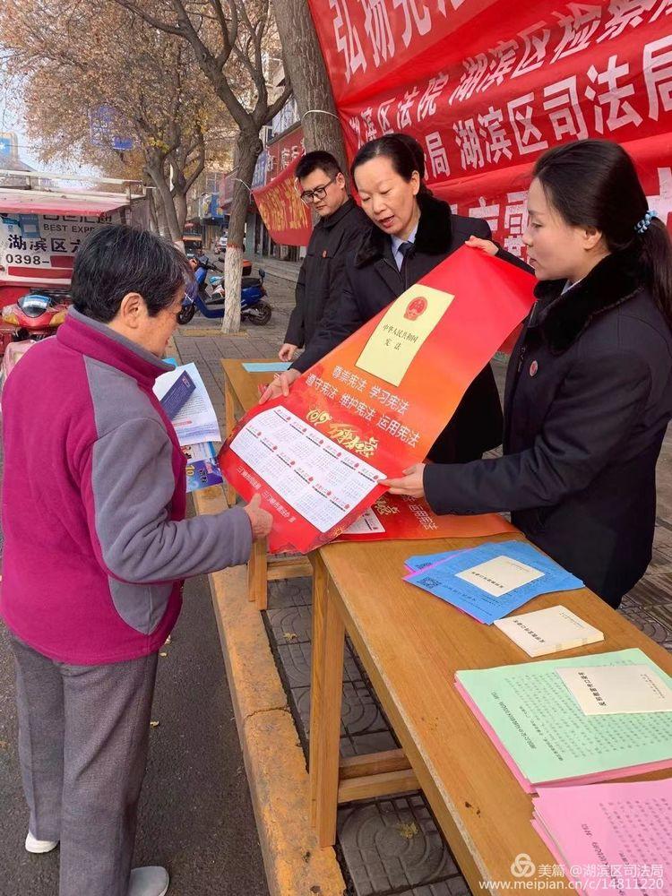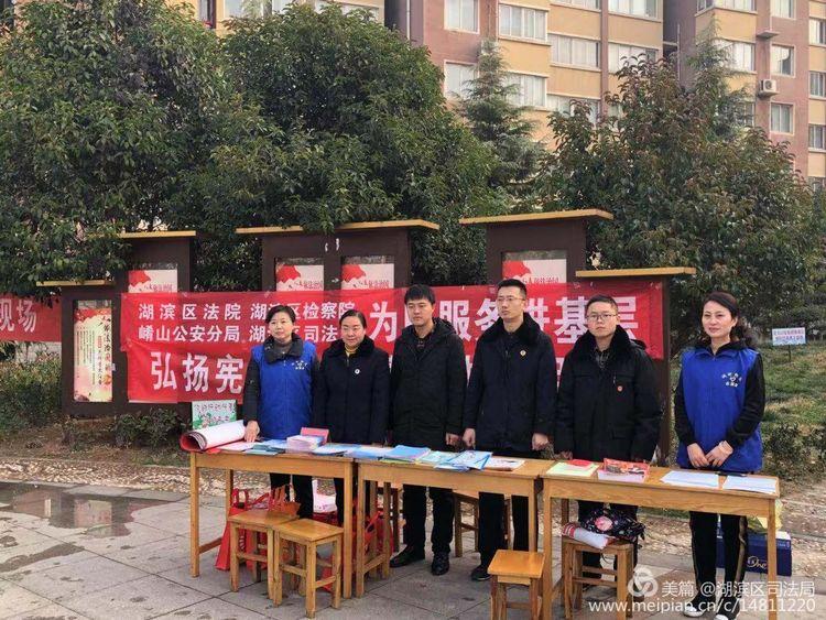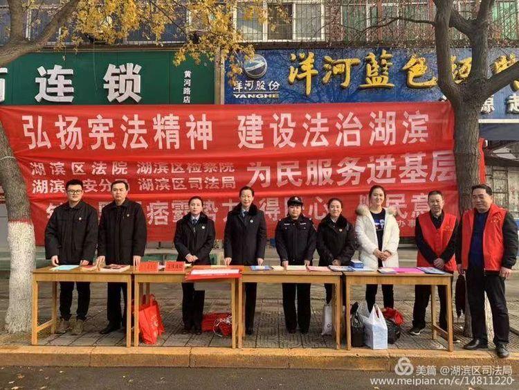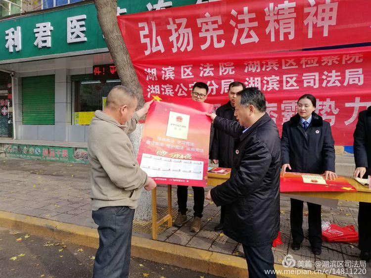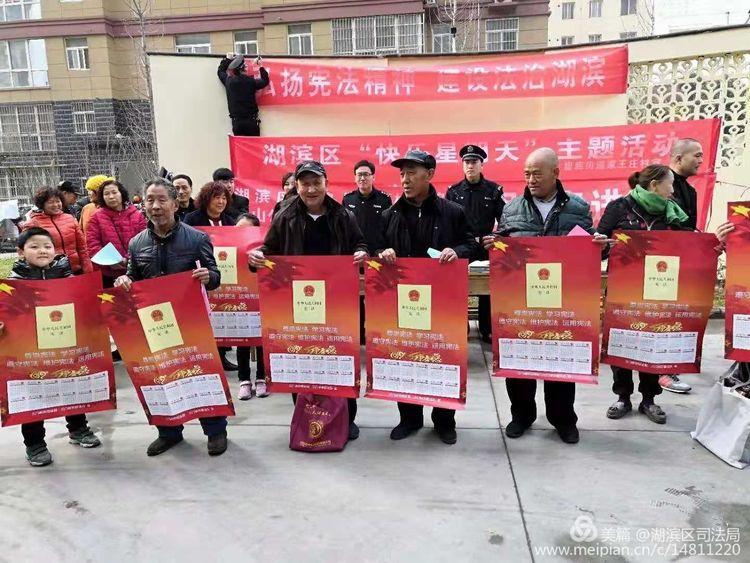 我们是湖滨区司法局的干警,今天宣传的宪法知识!