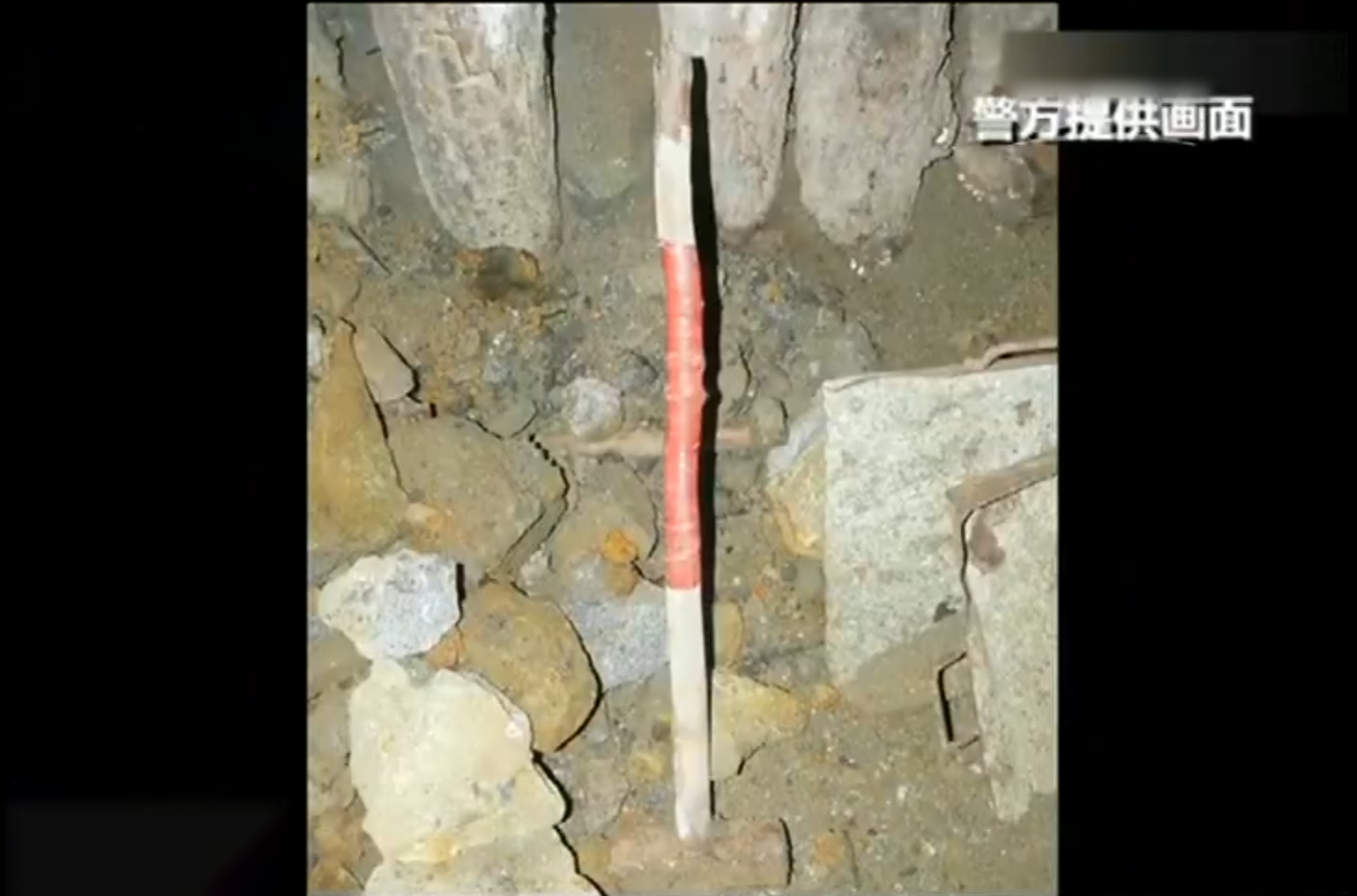 最后,是现场竖立摆放着的一把铁锤,爆炸后的现场工具摆放比较凌乱,但这把铁锤明显就是有人放在那里的。
