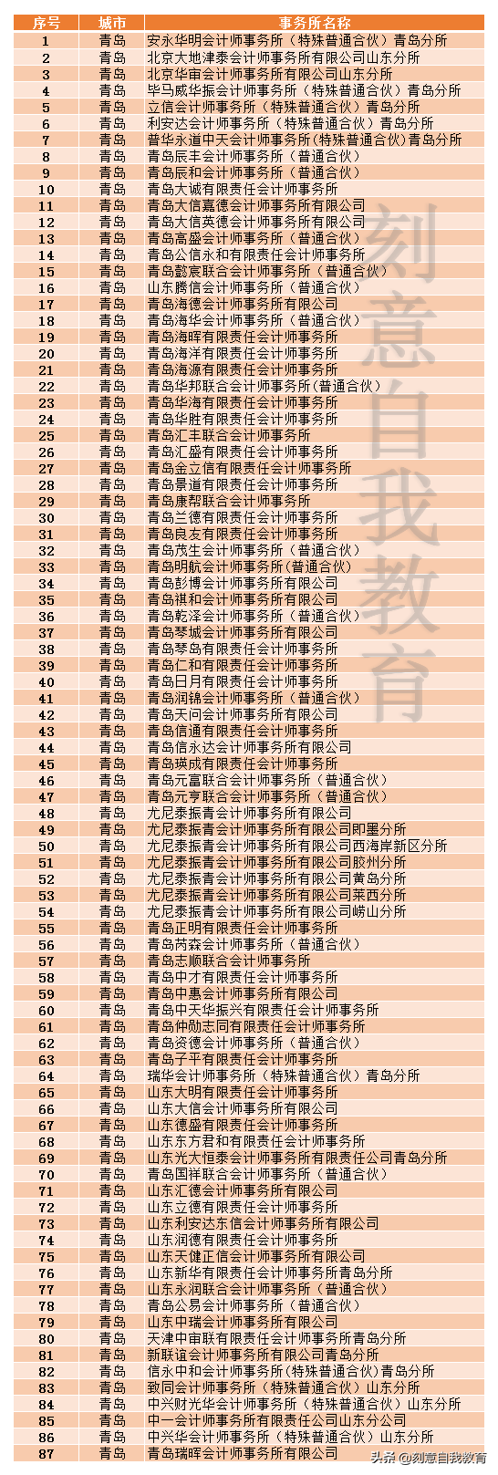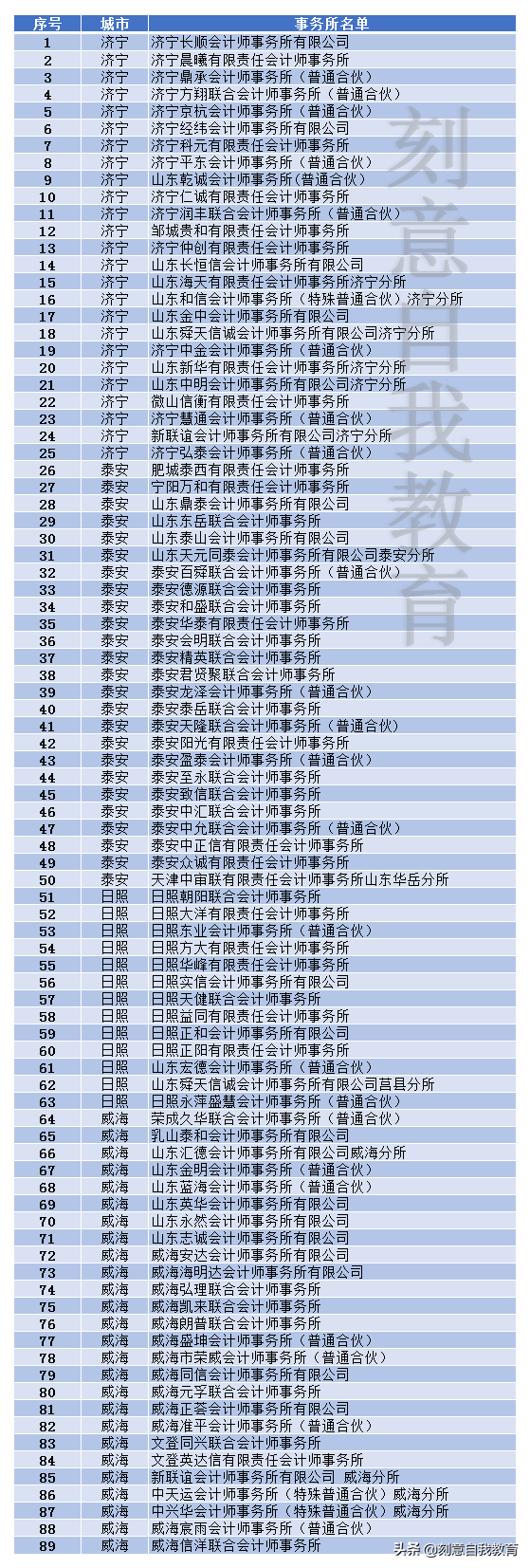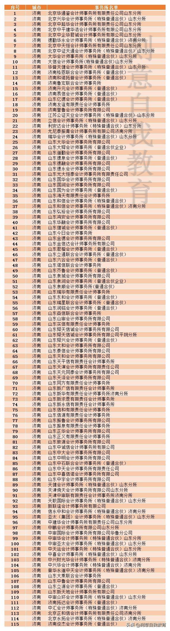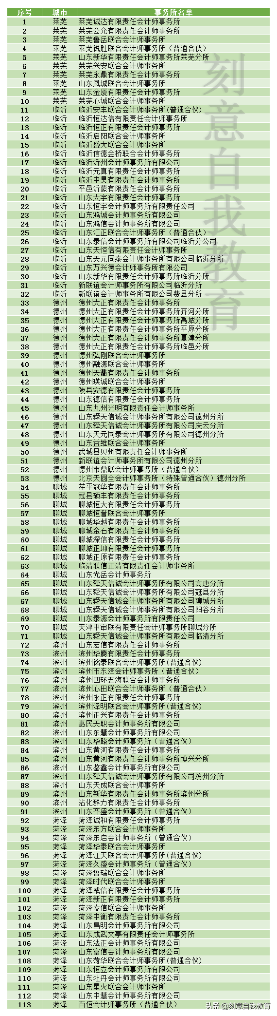 刻意自我教育送上山东省会计师事务所名单,本人专注于帮助大家考证,头条首页里有注册会计师考试更多干货,欢迎关注、查阅!