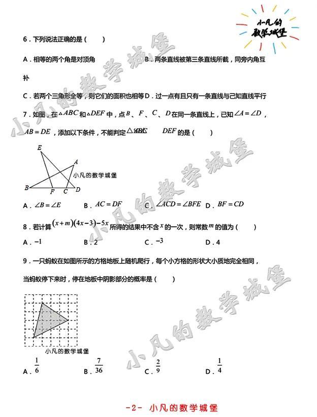 今天给大家带来的这套题是,2019~2020学年七年级下学期期末数学考试真题,这个时段,如果先做做这套题,提前预热一下,是非常有好处的,可以给自己摸摸底,看看在哪个章节,哪种题型上,知识点掌握的不够扎实,然后,有针对性的进行强化训练。
