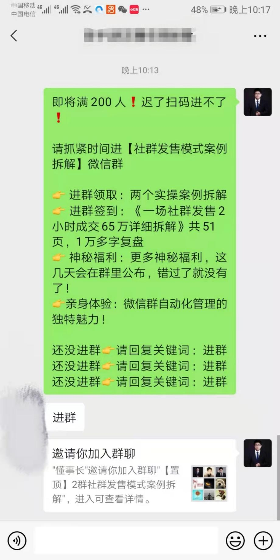 不然很多人进群之后,就不知所以然,就很快地退出了,所以建群,一定要有仪式感,要有氛围感,要有价值感,才能留得住人。