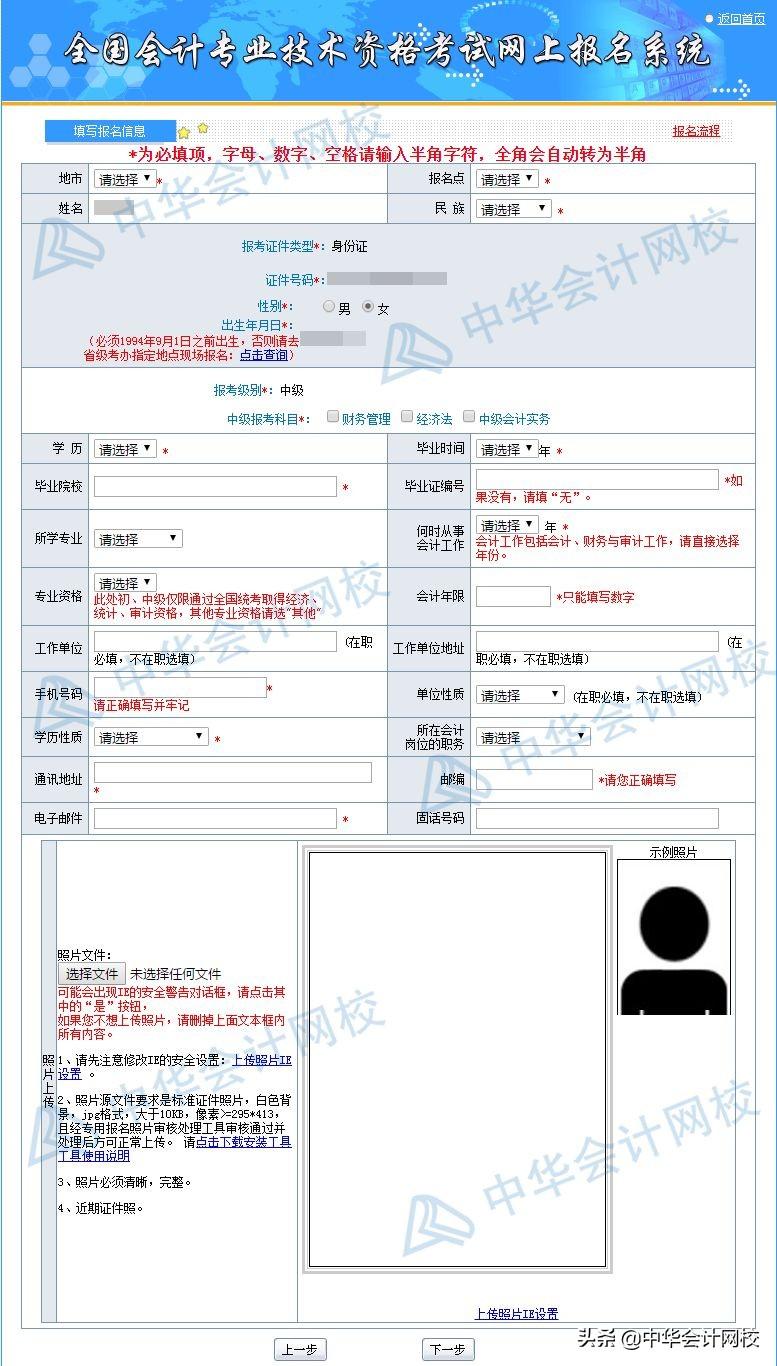 “全国会计资格评价网”报名系统中要求填写的内容如下: